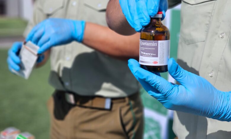 Como resultado de la pesquisa se logró la incautación de 57 frascos de 100 ml. de ketamina, 34 bolsas de nylon contendedoras de 37 gramos y 100 miligramos de la droga, tres vehículos y dinero en efectivo, entre otros elementos.